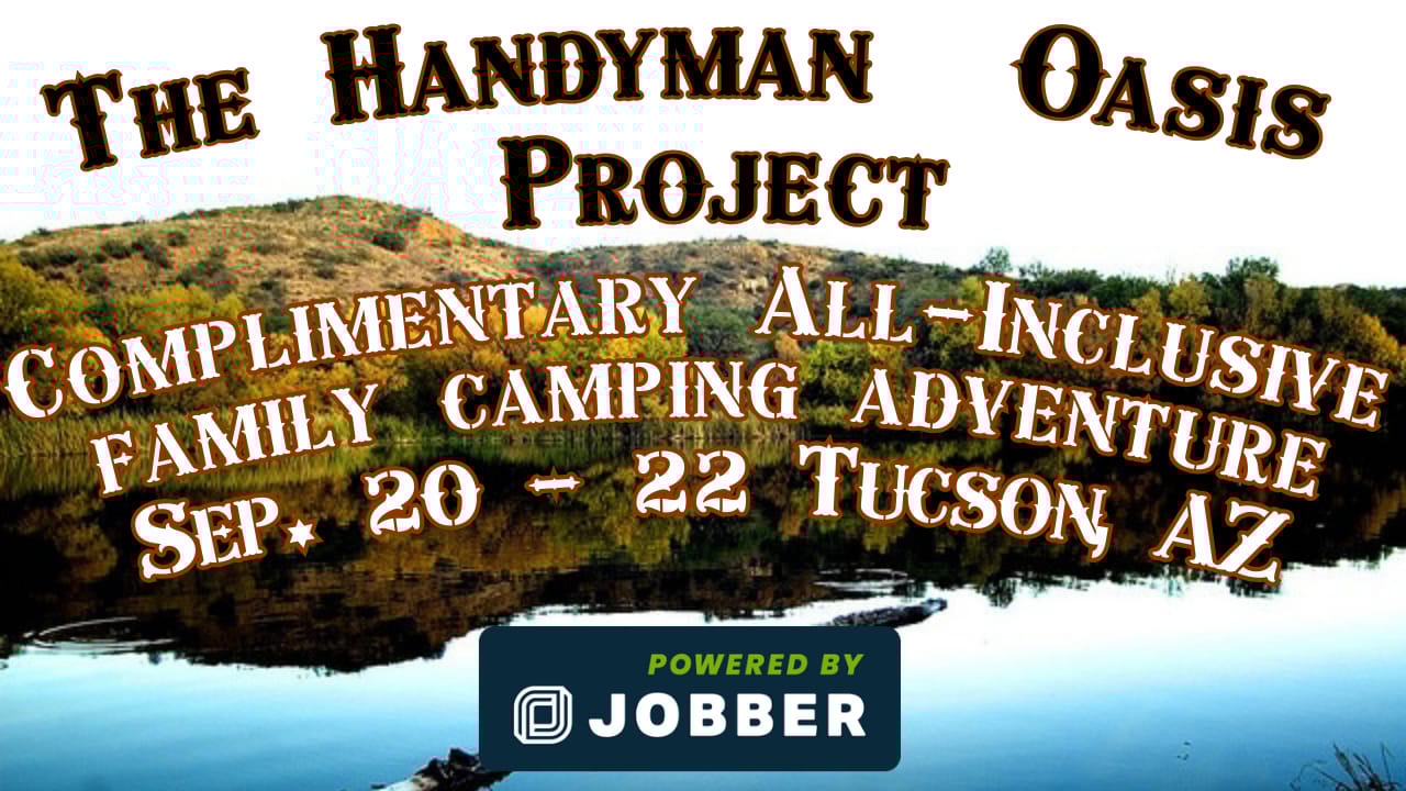 Finally, as if we haven’t talked about Jobber enough already, don’t forget that they’re sponsoring “The Handyman Oasis Campout” down here in Arizona September 20 – 22! This is a free service to you where I’ll be hosting you as my guest. The invitation is open to any and all channel subscribers along with their friends and family. I’ll be providing all of the gear and food. I’ll be setting up and taking down the entire camp for you. I’ll also be providing fishing gear and bait and doing all of the cooking and cleaning.